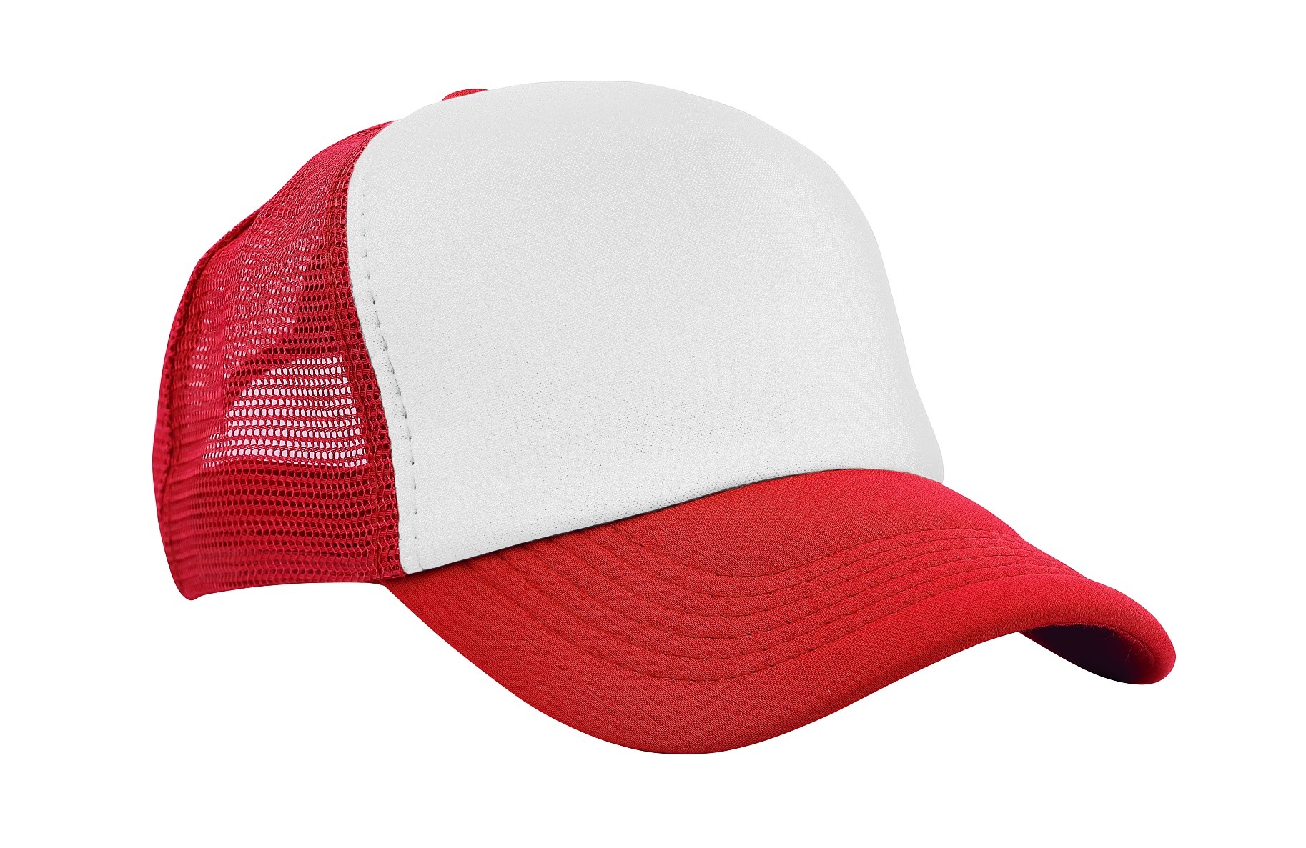 Reklamowa czapka z daszkiem wykonana z oddychającego materiału Poly Twill i siatki. Usztywniana z 6 panelami i profilowanym daszkiem z kontrastowymi przeszyciami. Rodzaj zapięcia – podwójne plastikowe zapięcie.